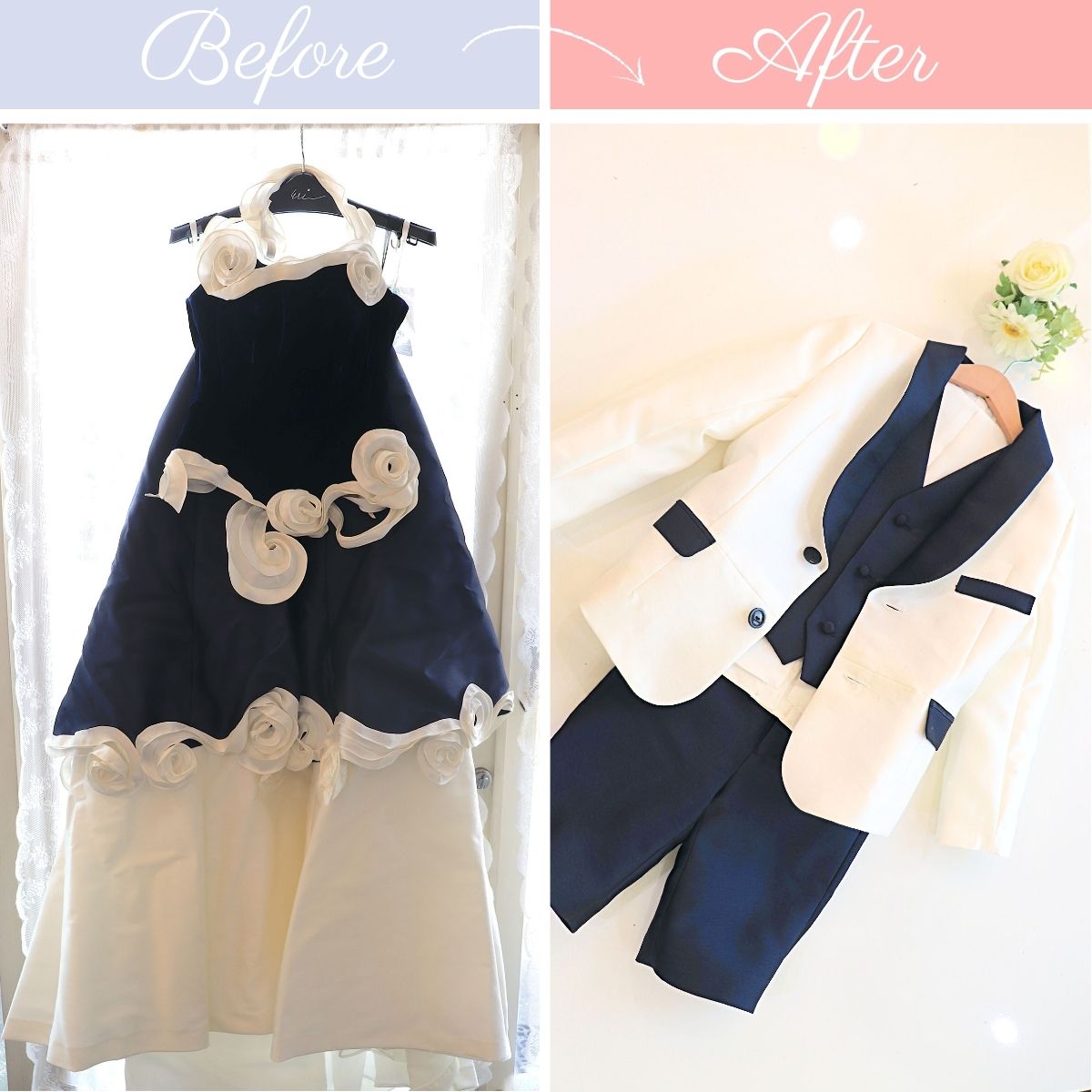 他には無い、世界にただ一つのドレスを自信を持ってお届けして参りますので、ウエディングドレスをお持ちのお母様はどうぞお気軽に『リメイクドレスリアンジェ』の扉をノックしてみて下さい♪
