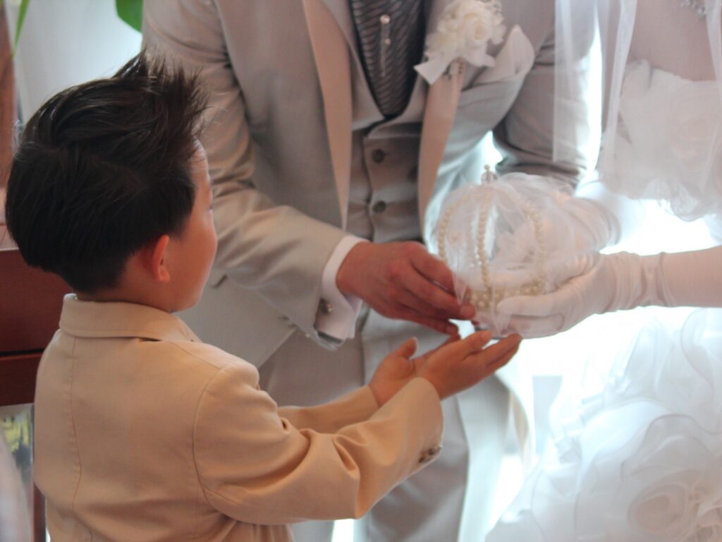 リメイク事例:ウエディングドレスからキッズタキシードへ