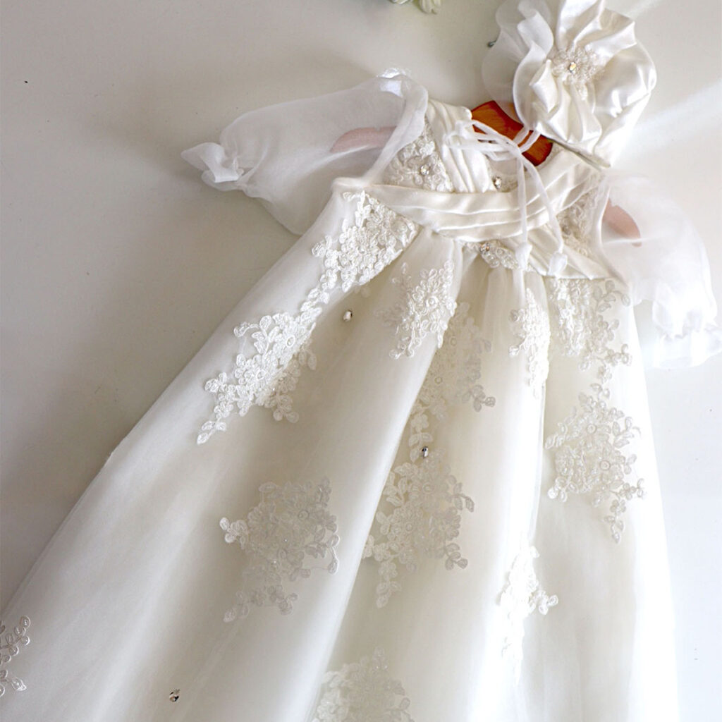 既製品のベビードレスは、どれだけ高価でも量産品です。同じデザインが何百、何千と存在し、お友達と被る可能性もあります。しかし、ウェディングドレスをリメイクしたベビードレスは、完全なオーダーメイド。