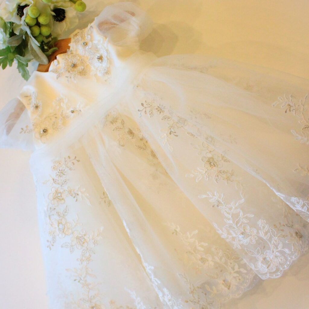 ウェディングドレスをリメイクしたベビードレスには、「ママが結婚式で着たドレスから作られた」という唯一無二のストーリーがあります。