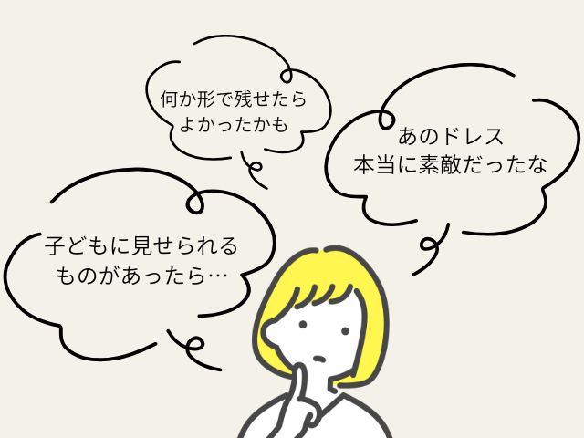 「ドレスは購入しなかったけれど、やっぱり何か残したい」という気持ちは、式後数年経ってから湧いてくることも。今からでも遅くありません。