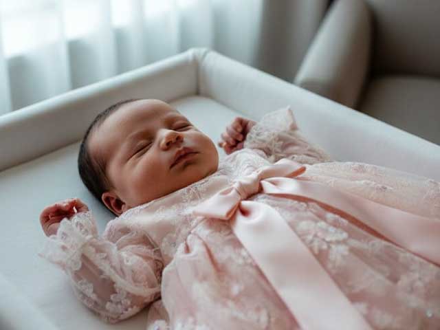 この時期の赤ちゃんは中性的なお顔立ちで、レースやフリル、サテンなどの上質な素材があしらわれた優雅なドレスが男の子・女の子問わず似合うのが魅力です。白やクリーム色を基調としたデザインが定番で、赤ちゃんの柔らかな肌を一層美しく見せてくれます。