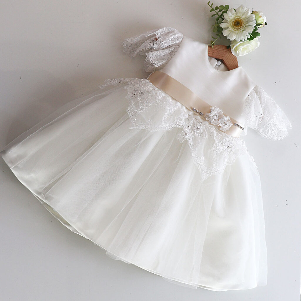 ウェディングドレスがベビードレスになった瞬間、それは「過去の遺物」ではなく、「生きている記念品」に変わります。
