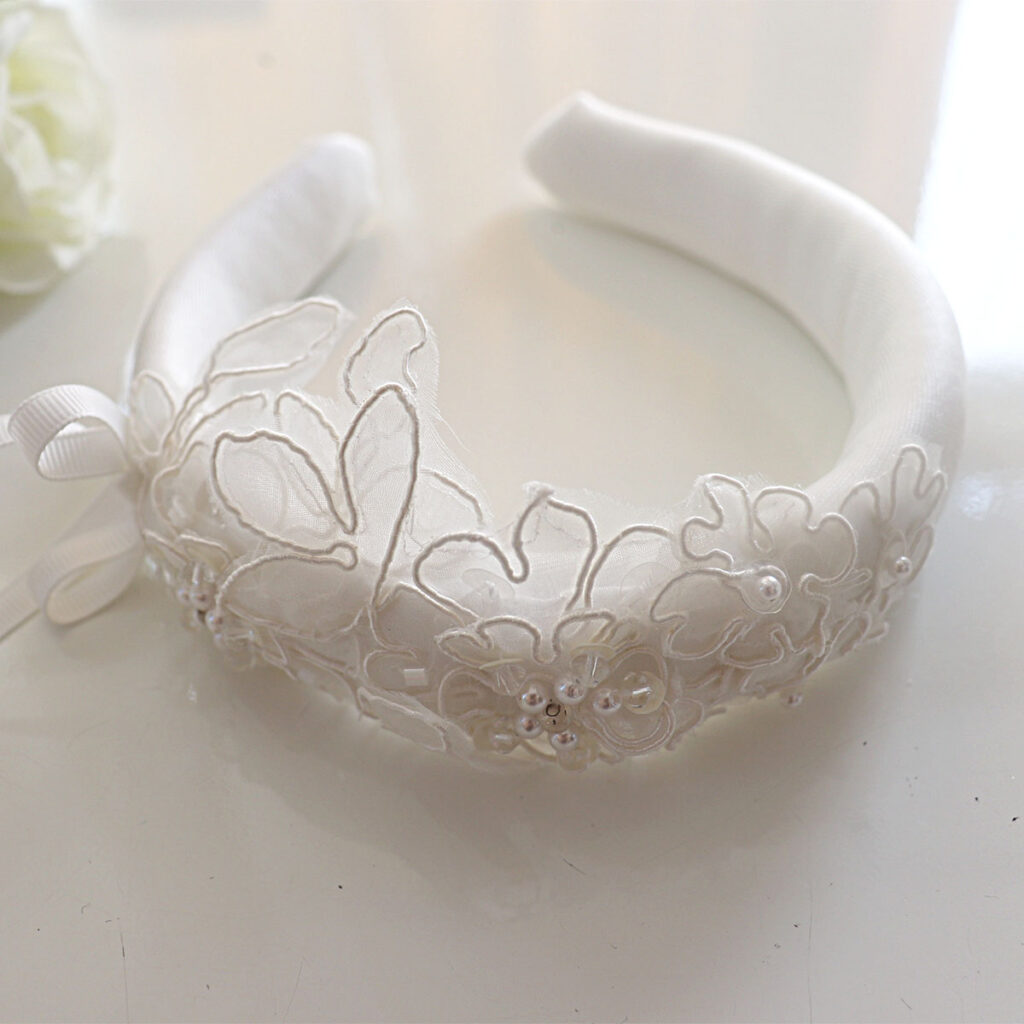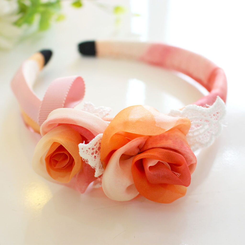 カチューシャは赤ちゃんの頭に添えるだけで写真の印象がぐっと華やかになり、ベビードレスとの一体感が生まれます。