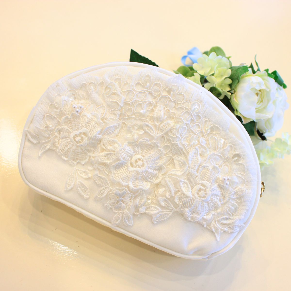 ビーズ刺繍やレースが印象的な部分をポーチの表面に配置することで、元のドレスのデザインをそのまま手元に残すことができます。