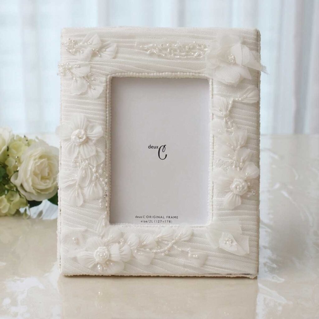一見シンプルなアイデアですが、「写真の中の赤ちゃん」と「額縁を飾るレース」が同じドレスの素材でつながっているという点に、深い意味が生まれます。