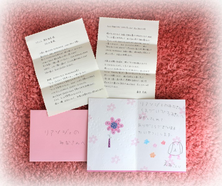 何と、ちーちゃんの持ち主である藤原笑子ちゃんとお母さまからカードとお手紙を頂きました♪